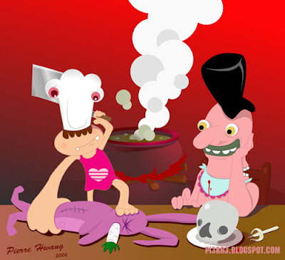 Warau the cook is cooking dinner for Mr.Ruben and Ruben's wife Michelle,